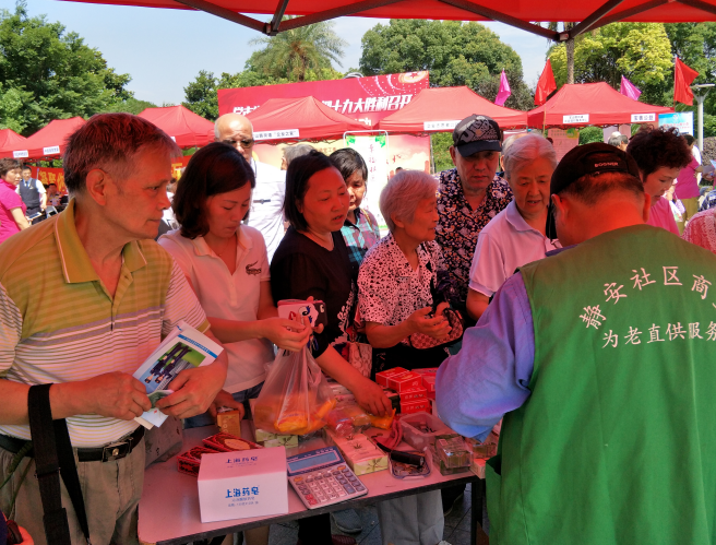 6月28日上午,静安区商业联合会·社区商业直供服务工作联盟,结合迎建党96周年,在宝山路街道中兴绿地,组织惠民直供专场活动,为居民送上了温馨服务。