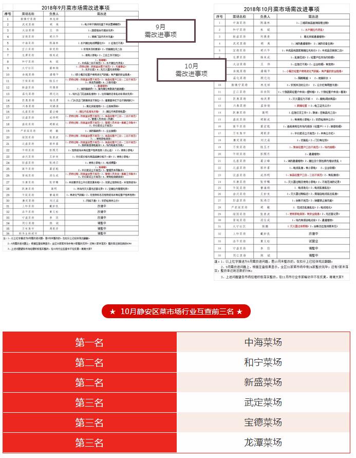 【菜场信息】2018年10月静安区菜市场综合考评行业互查结果发布