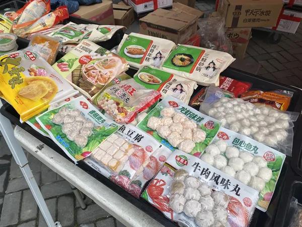 图说:红色大棚里,有各类半成品、冷冻食品、零食等年货